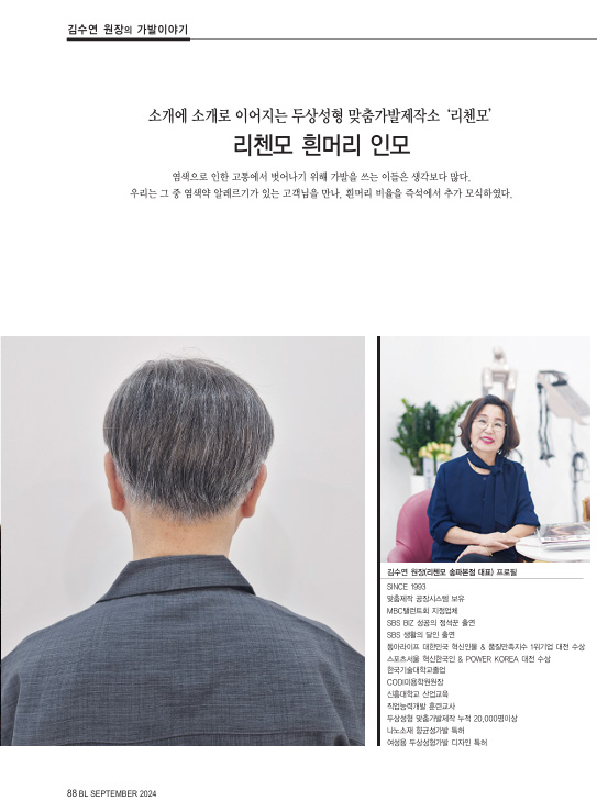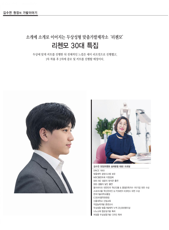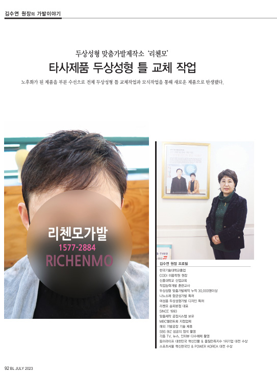 리첸모 소개 CEO인사말 리첸모 연혁 목표 & 비전 리첸모 매체 리첸모가발TV 오시는 길 제작 이야기 리첸모 MAN 헤어 스타일 가발 소개 리첸모 WOMAN 헤어 스타일 가발 소개 LOVE CARE 항암가발소개 환우모델신청 LOVE CARE 모델지원 수혜자 발표 케어프로그램 가발관리법 수선현황 수선상담 커뮤니티 예약 리첸모 제품상담 리첸모 매거진 가맹점 문의 공지사항 및 문의 해외고객전용 상담·문의 리첸모 쇼핑몰 공지사항